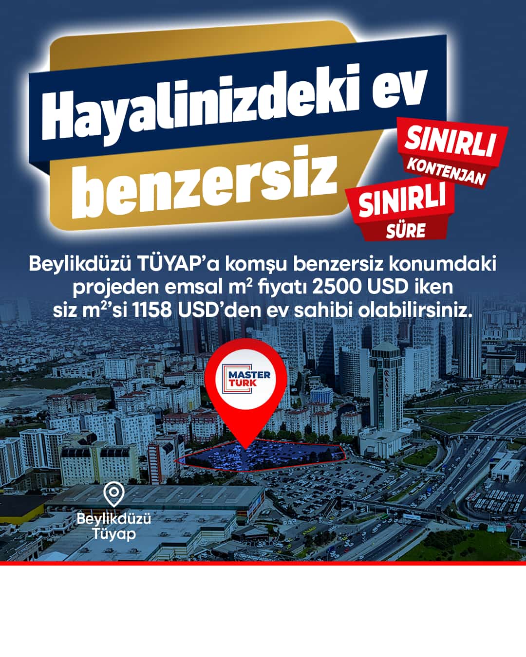 MASTERTÜRK GYF / İSTANBUL BEYLİKDÜZÜ’NDE MUHTESEM YATIRIM FIRSATI İSTANBUL BEYLİKDÜZÜTÜYAP FUAR MERKEZİ YANINDAE5 KARAYOLUNA CEPHEBEYLİKDÜZÜ METROBÜS YANINDAİNŞAAT BİTİRME SİGORTASIGYF MODELİNDEMUHTESEM YATIRIM FIRSATI Lorem ipsum dolor sit amet, consectetur adipiscing elit. Ut elit tellus, luctus nec ullamcorper mattis, pulvinar dapibus leo.